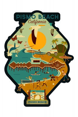 Pismo Beach, California - Geometric - Blue Sky - Contour - Lantern Press Artwork