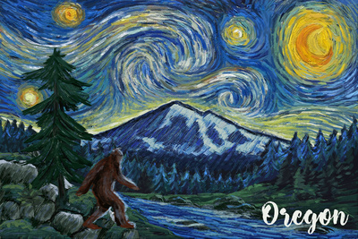 Oregon - Columbia River - Bigfoot - Starry Night - Lantern Press Artwork