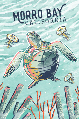 Morro Bay, California - Graphic Pastel - Sea Turtle - Lantern Press Artwork