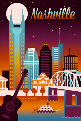 Nashville, Tennessee - Retro Skyline - Light - Chromatic Series