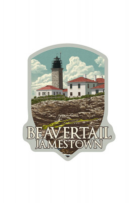Jamestown, Rhode Island - Letterpress - Beavertail Lighthouse - Contour