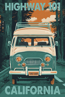 Yurok Country, California - Letterpress - Camper Van - Forest - Lantern Press Artwork