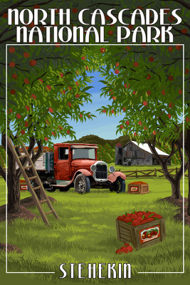 North Cascades National Park, Stehekin, Washington - Apple Orchard & Red Truck