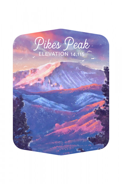 Pikes Peak, Colorado - Purple Skies over Pikes Peak - Watercolor Study - Contour