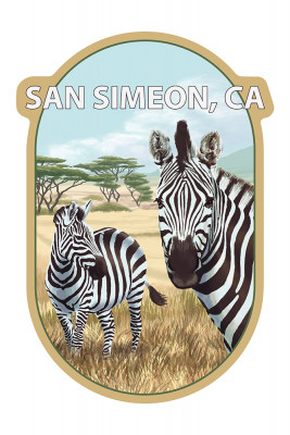 San Simeon, California - Zebras in Field - Hearst Castle - Contour