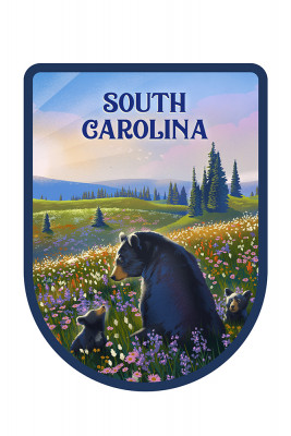 South Carolina - Lithograph - Bear Family in Field - Contour