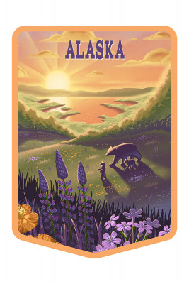 Alaska - Lithograph - Bear & Spring Flowers - Lake - Contour