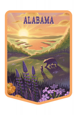 Alabama - Lithograph - Bear & Spring Flowers - Lake - Contour
