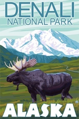 Denali National Park, Alaska - Moose & Snowy Mountain