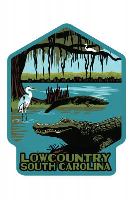 Yemassee, South Carolina - Gators and Heron Scene - Contour