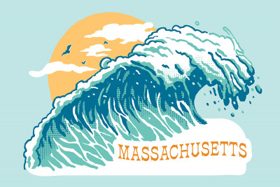 Massachusetts - Distressed Ink - Perfect Wave