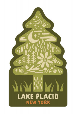 Lake Placid, New York - Boho Colorblock - Evergreen - Contour