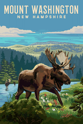 Mount Washington, New Hampshire - Painterly - Moose & Wildflowers