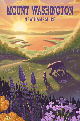 Mount Washington, New Hampshire - Lithograph - Bear & Spring Flowers - Lake