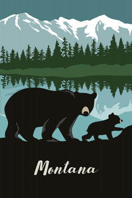 Montana - Black Bear & Cub with Snow