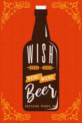 Stevens Point, Wisconsin - Wish you were Beer - Sentiment - Red & Yellow - Bottle Typography