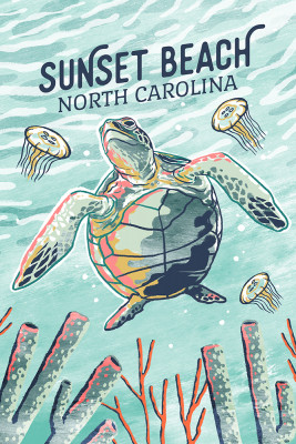 Sunset Beach, North Carolina - Graphic Pastel - Sea Turtle