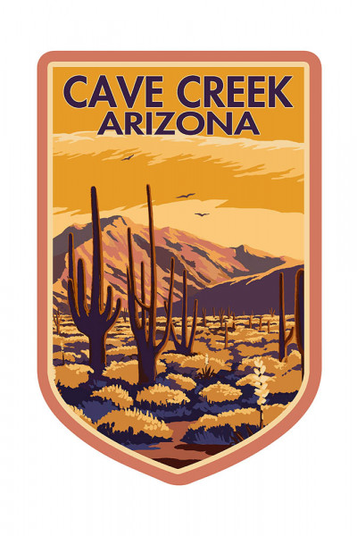 Cave Creek, Arizona - Painterly - Desert Scene with Cactus - Contour