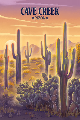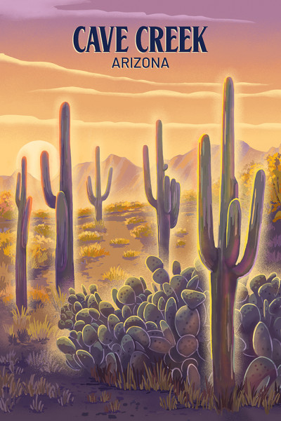 Cave Creek, Arizona - Lithograph - Cactus and Sunset