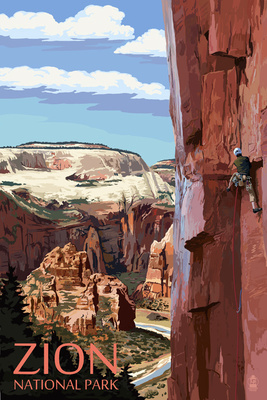 Zion National Park - Cliff Climber - Lantern Press Poster