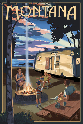 Montana - Retro Camper & Lake - Lantern Press Artwork