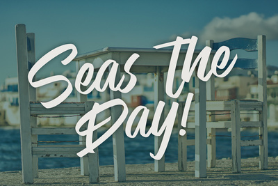 Seas the Day - Wooden Table & Chairs on Beach - Lantern Press Photography