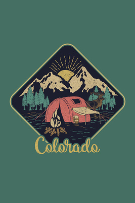 Colorado - Camping Scene & Elk - Contour - Lantern Press Artwork