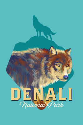Denali National Park, Alaska - Wolf - Vivid Watercolor - Contour - Lantern Press Artwork