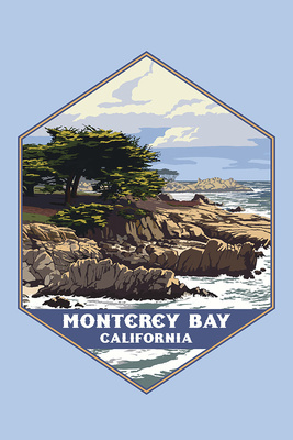 Monterey Bay, California - Rocky Shore & Cypress Tree - Contour - Lantern Press Artwork