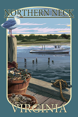 Northern Neck, Virginia - Blue Crab & Oysters on Dock - Contour - Lantern Press Artwork