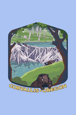 Corvallis, Oregon - Beaver Family - Spring - Contour - Lantern Press Artwork