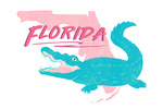 Florida - Stay Wild - Alligator, Flamingo, Manatee - Gouache - Lantern Press Artwork