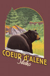 Coeur d'Alene, Idaho - Black Bear - Watercolor - Lantern Press Artwork