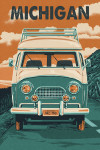 Michigan - Retro Camper on Road - Lantern Press Artwork
