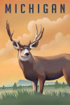 Michigan - Mule Deer - Litho - Lantern Press Artwork