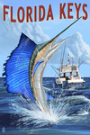 Florida Keys, Florida - Palms & Sunset - Lantern Press Poster