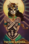 Tucson, Arizona - Day of the Dead - Skeleton Holding Sugar Skull - Lantern Press Artwork